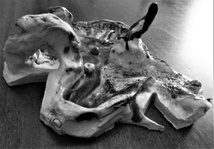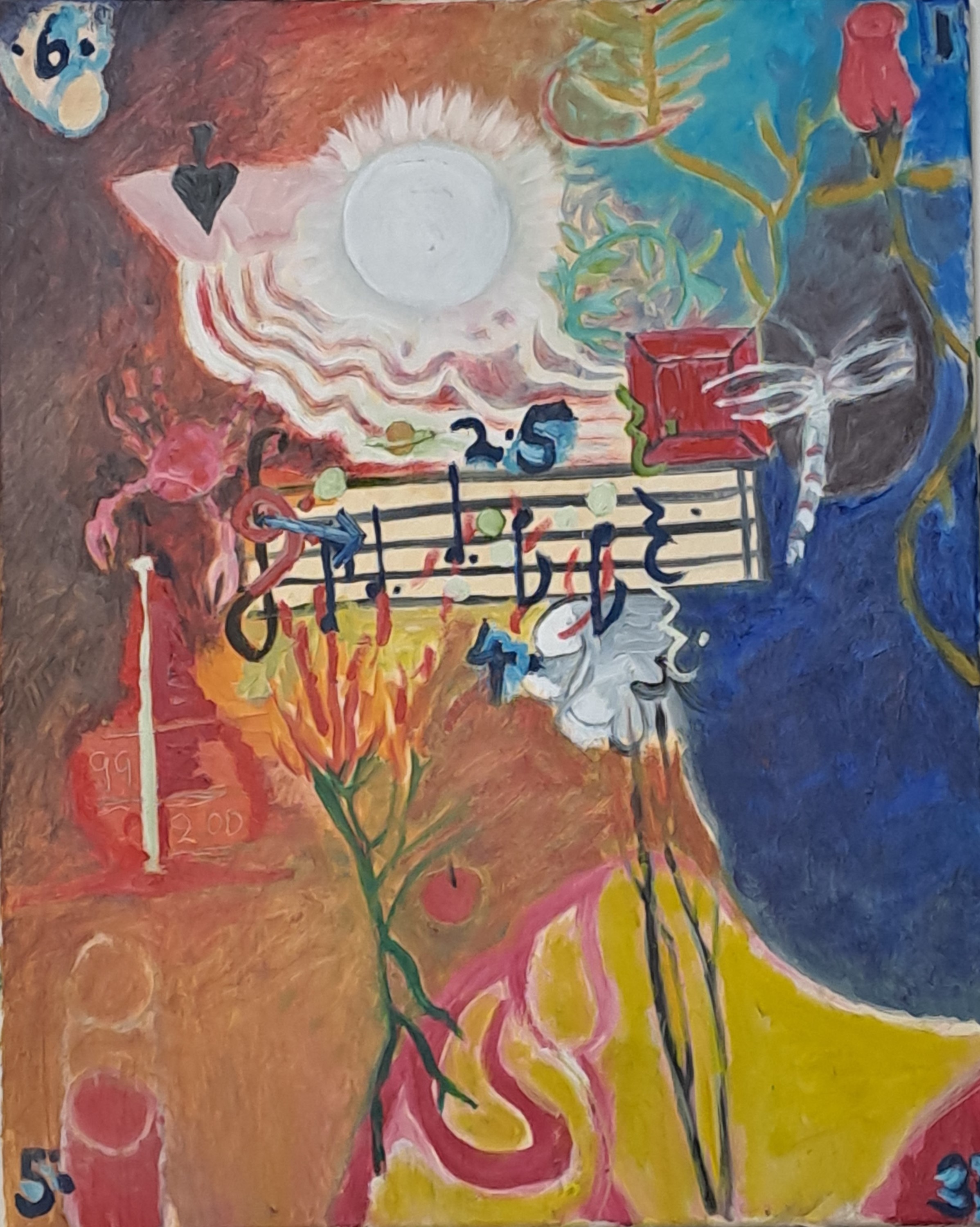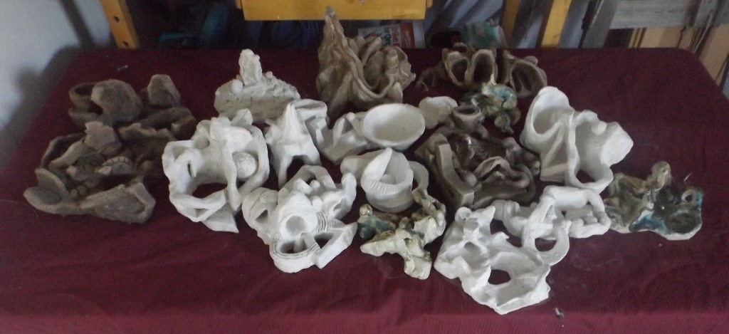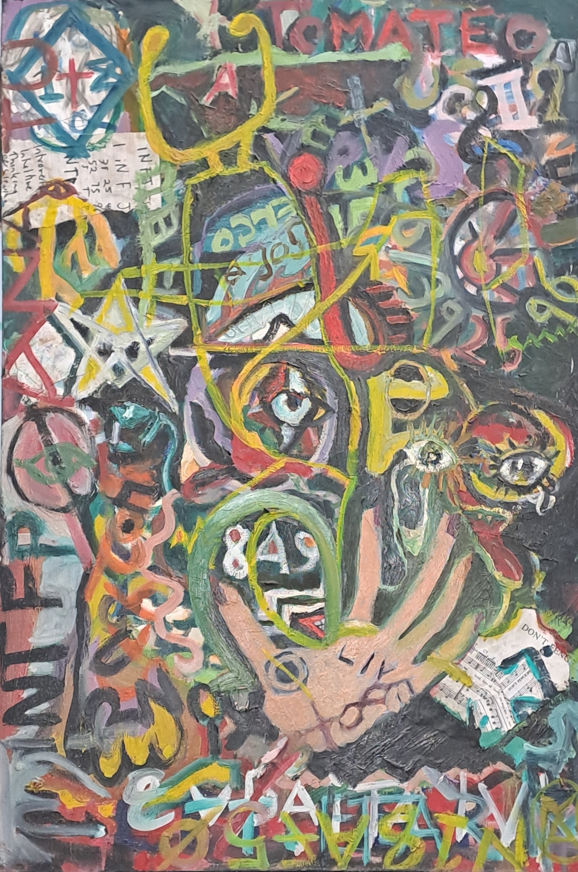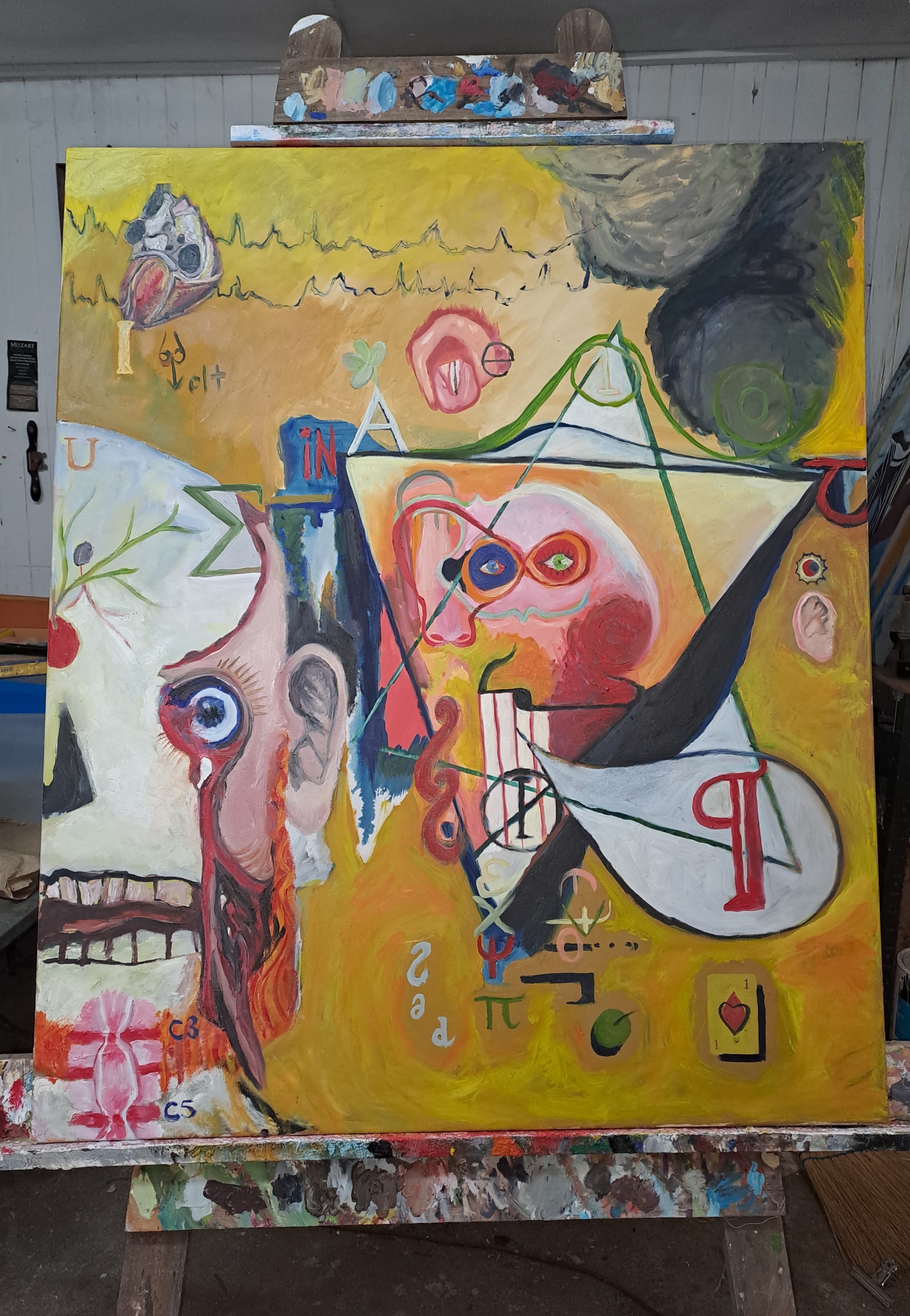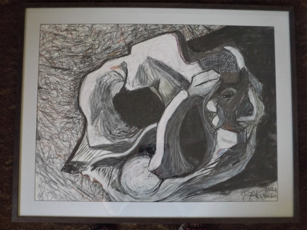 My current series I am in the process of completing is of paintings that express in a semiotic way my years of physical pain with Ankylosing Spondylitis. A chronic joint condition of my spine that led to cervical nerve compression (a disc between two bones in the neck that grew and fused over pushing into the spinal nerve) with myopathy (progressive death of the spinal nerve because of the over-grown disc pressing into the nerve itself), with acute left arm paralysis that came about around Christmas 2023. Taking chronic pain, to acute and then to need emergency surgery.