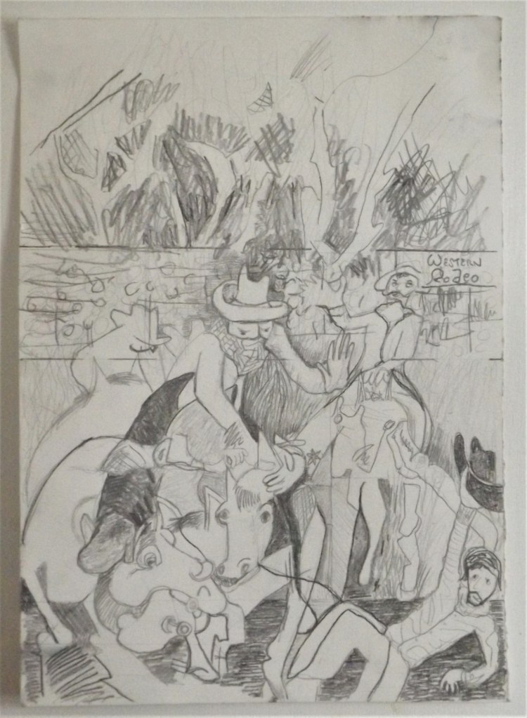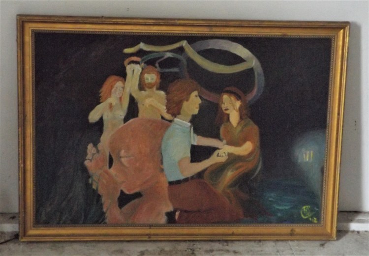 These paintings are quite horrific viewing. They have the essence of the horror genera. Some paintings have been many years of work with adding and subtracting, altering and reworking of colours and composition. The paintings may not be of very commercial value but are important as they express my feelings of a major time and experience of my life.