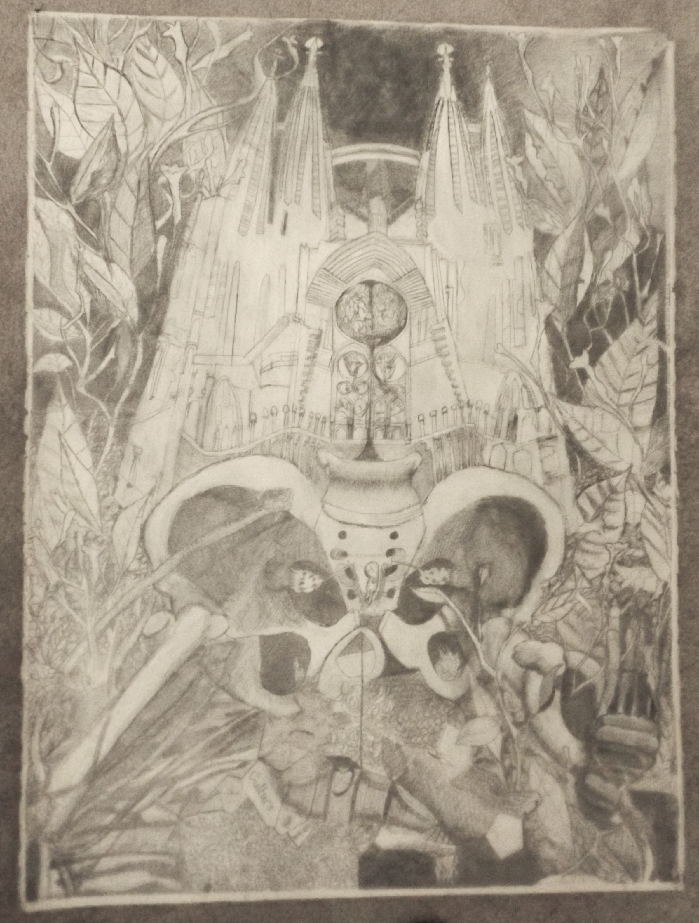 Left: Culture and Myth (2002): Graphite and white acrylic on Arches Aquarelle 310gsm.