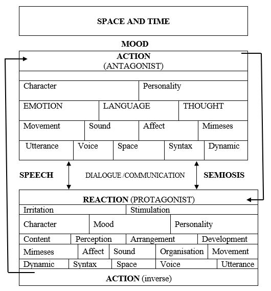 The semiotic style of interpreting character has been chosen to explore the spatial and temporal aspects of interpreting the roles of character. This is important in the arts of opera and oratorio. Also the whole orchestra may interpret tone poems like those of Claude Debussy or Arnold Schonberg.